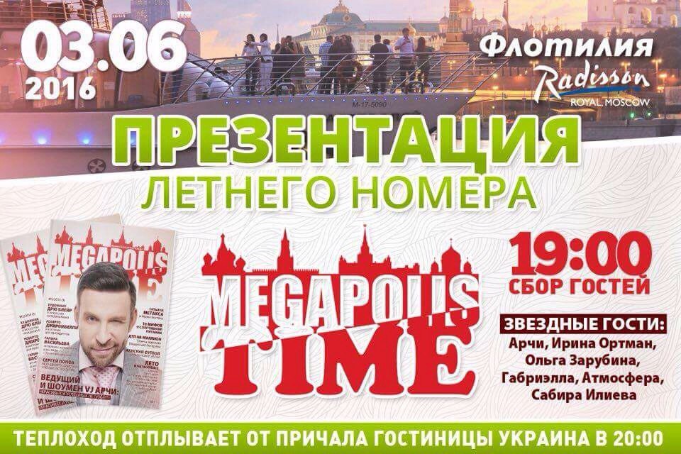 3 июня проект Атмосфера выступит на презентации летнего номера журнала Megapolis Time, для которого инопланетная Дива дала своё эксклюзивное интервью. Встречаемся на борту Radisson в 19.00, будет по летнему жарко!